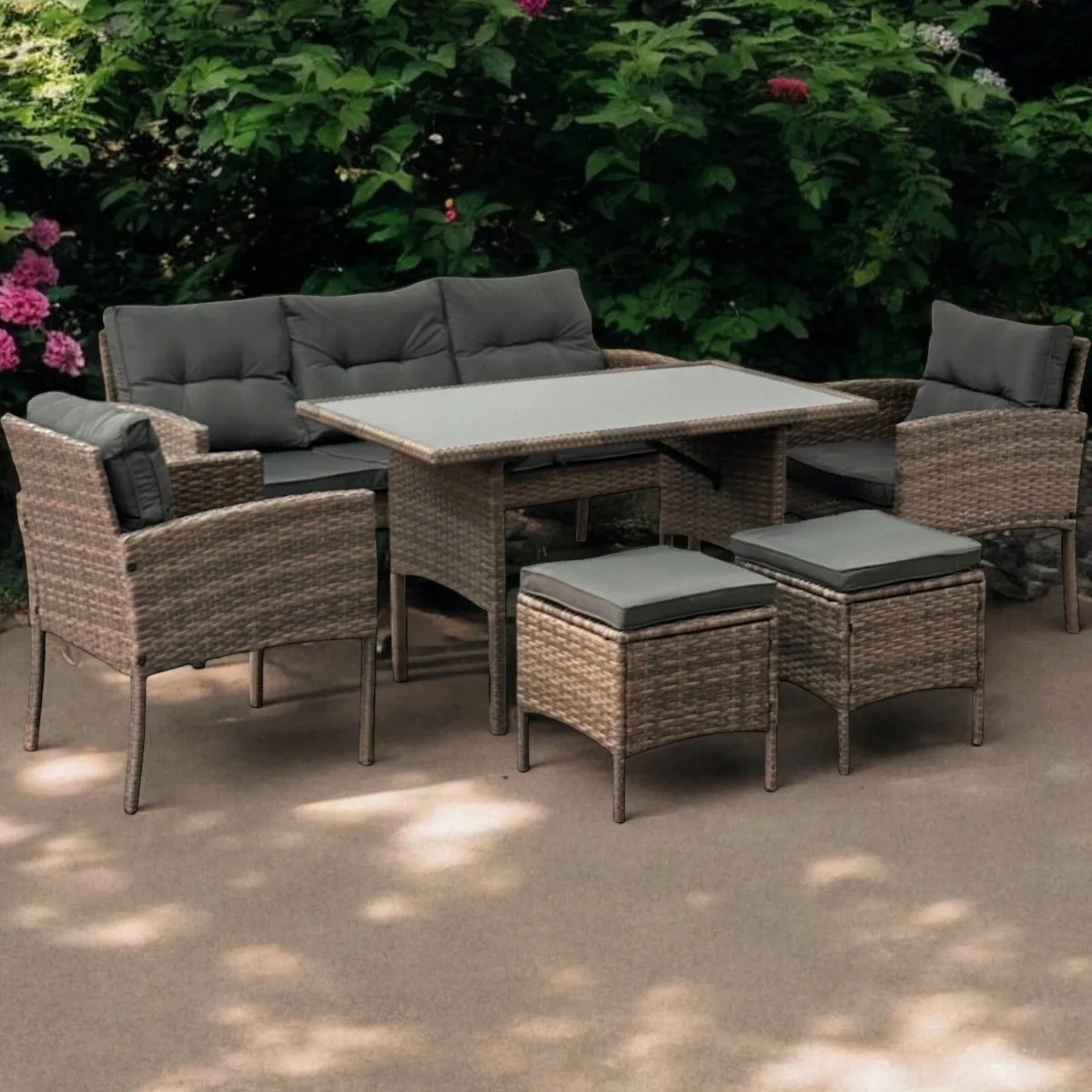 Zestaw mebli ogrodowych Estepona to połączenie solidności, funkcjonalności i wyjątkowego komfortu. Starannie wykonany z trwałych materiałów, zachwyca detalami i zapewnia wygodę na długie lata. To idealny wybór dla tych, którzy cenią sobie relaks na świeżym powietrzu w najlepszym stylu.