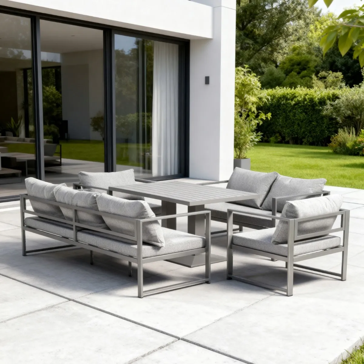 Stalowy zestaw mebli ogrodowych San Sebastian łączy elegancję, funkcjonalność i wygodę. Trwała konstrukcja, praktyczny układ oraz komfortowe poduszki tworzą idealną przestrzeń do relaksu na świeżym powietrzu – dla całej rodziny lub grupy przyjaciół.